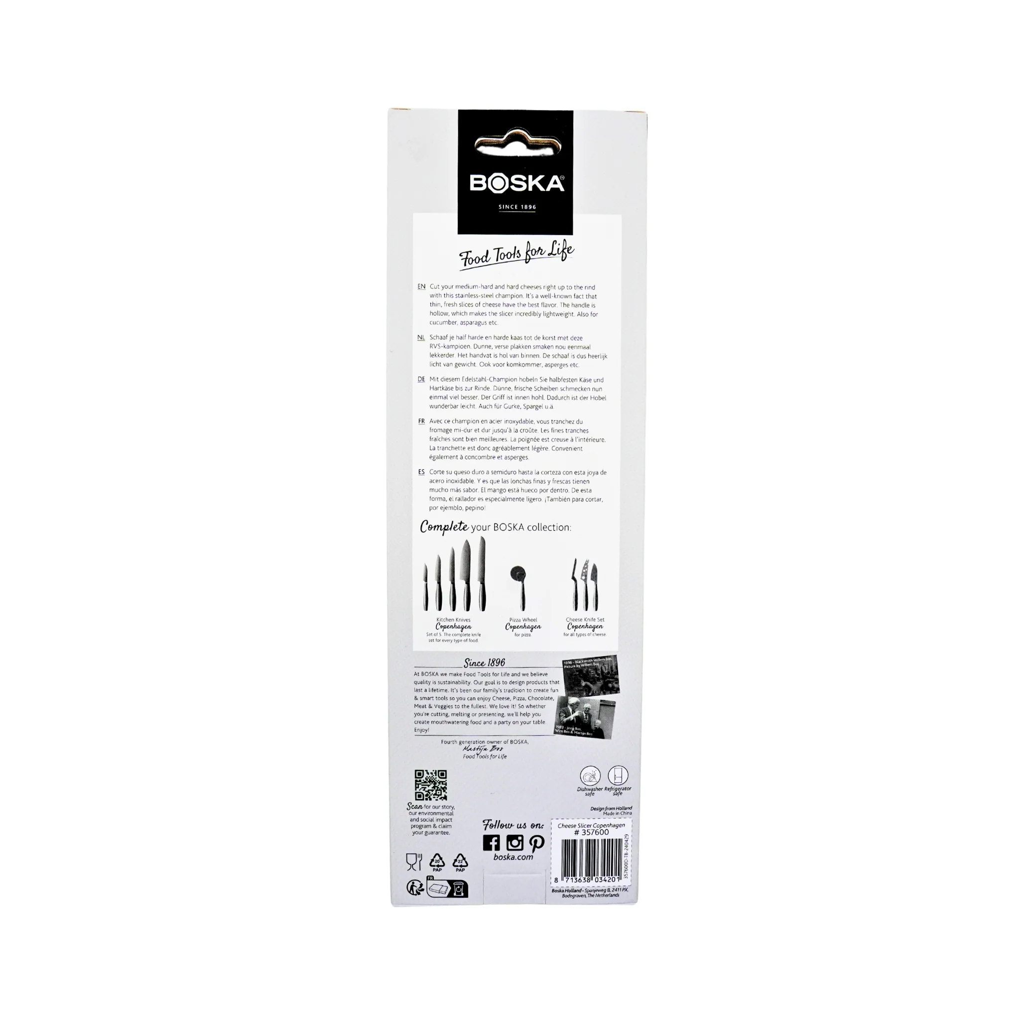 Make cheese slicing effortless with the Boska Stainless Steel Cheese Slicer Copenhagen. Designed for precision and ease, this durable slicer creates perfect, even slices every time. Its sleek stainless steel build ensures long-lasting use, making it a handy tool for any cheese lover’s kitchen.