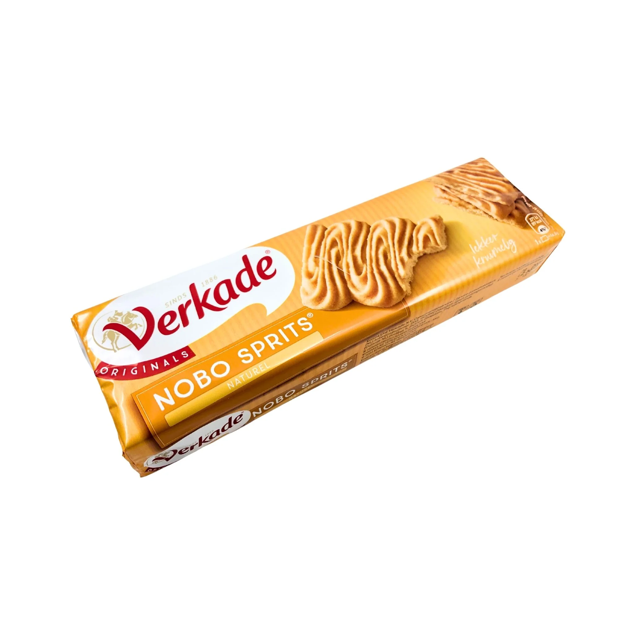 Savor the classic taste of Verkade Nobo Sprits Cookies, a 5.2 oz package of buttery, crisp cookies with a delicate texture. These friendly treats are perfect for enjoying with tea, coffee, or anytime you want a simple and delicious snack.