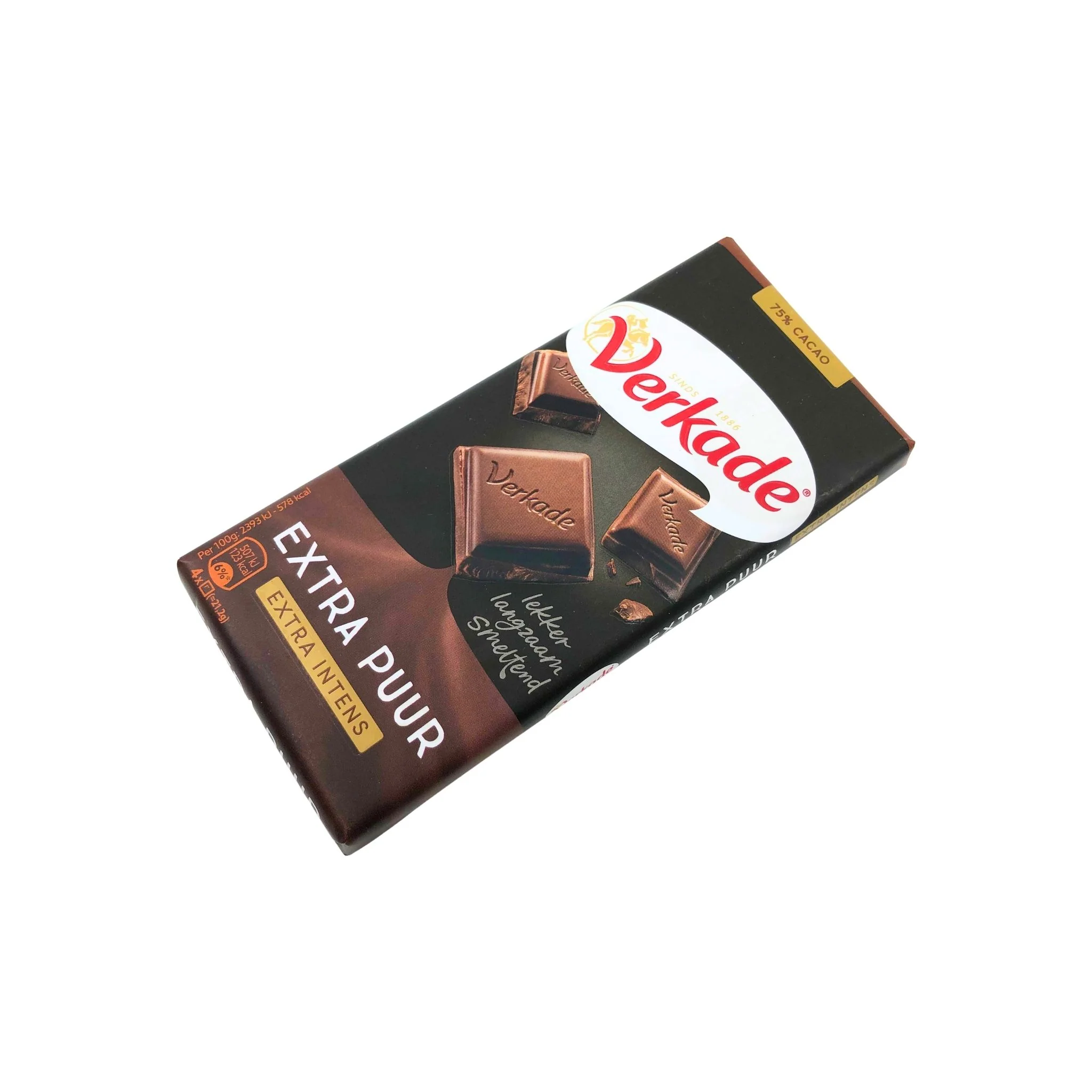 Indulge in the rich, bold flavor of Verkade Extra Dark (Puur) Chocolate Bar, weighing 3.9 oz. This intense dark chocolate offers a smooth, satisfying taste perfect for those who appreciate a deeper cocoa experience. Enjoy a delicious treat that’s both elegant and satisfying anytime.